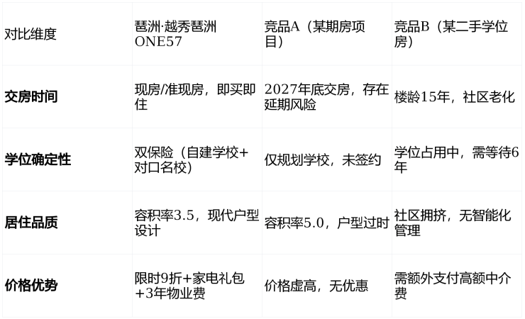 结论****:琶洲·越秀琶洲ONE57在时间确定性、学位保障、居住品质和价格优势上全面领先,是2026年入学家庭的明智之选。