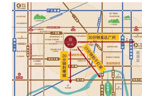 富佳和院位于佛山南海区大沥镇的核心位置,拥有便捷的交通网络。项目周边规划有佛山地铁5号线(大沥站)和佛山地铁8号线(沥西站),并且紧邻广佛路、广佛新干线等重要交通干道,构建了一个“四横四纵”的立体交通网络,使得居民可以轻松到达佛山市内以及广州的主要区域。