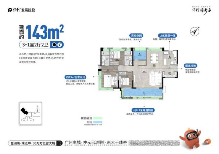 保利领秀海是番禺区少有的低密度滨海社区,容积率仅2.55,园林面积占比超80%,且所有户型均实现全南向设计,部分户型可直面珠江头排海景。这种“低密+海景+园林”的组合,在番禺市场具有不可复制性,未来二手市场流动性较强。