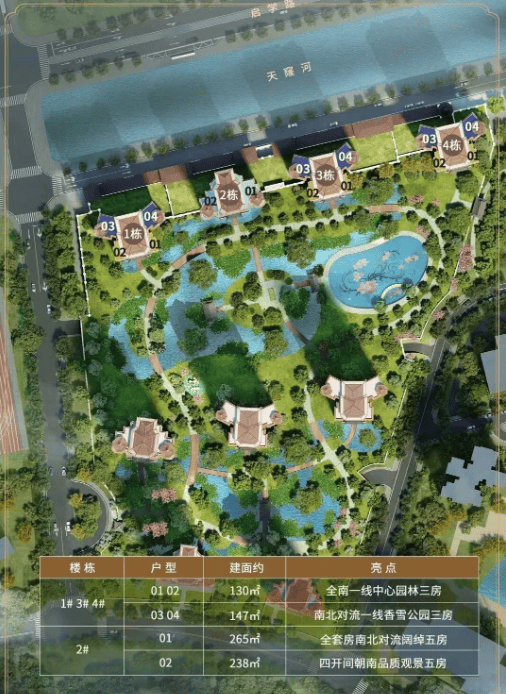 设计特色:户型设计注重采光与通风,如130㎡和147㎡户型设有双阳台和大飘窗,而238㎡和265㎡的大户型则拥有宽敞的空间布局,满足不同家庭的需求。