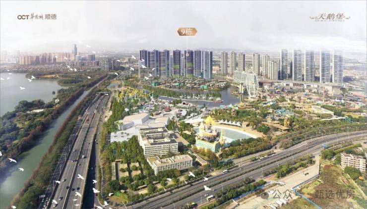 一个楼盘的核心价值,首先锚定于它的坐标。华侨城天鹅堡二期坐落于佛山顺德大良新城核心——华侨城板块。这不是一个孤立的社区,而是与湾区现象级文旅商综综合体“欢乐海岸PLUS”融为一体,真正实现了“出则繁华,入则宁静”。