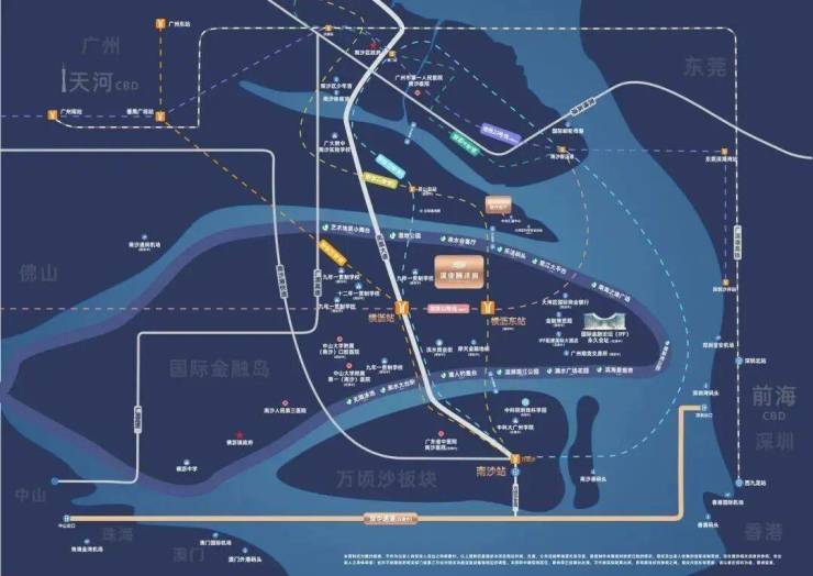 高速与跨城:自驾5分钟接入广澳高速,8分钟接入莞佛高速,至广州天河区约40分钟,至深圳前海新区约50分钟;临近在建深中通道(预计2026年通车),通车后至中山市区约30分钟;项目距南沙邮轮母港约12公里,自驾28分钟可达,可通过邮轮直达香港、澳门。