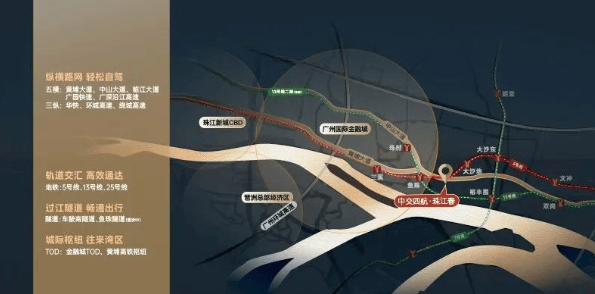 交通的便利性是衡量一个项目价值的重要指标。珠江春周边交通网络发达,5号线与13号线二期两条高含金量的地铁线路交汇,加上中山大道与黄埔大道两条超级城市主干道,一线直连珠江新城与金融城。临江大道隧道、临江大道东延线及鱼珠隧道正在建设中,一旦拉通,将实现“珠金琶”的真正融合。