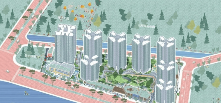 项目占地面积约 4.8 万㎡,建筑面积约 16.8 万㎡,中央园林约 1.4 万㎡,容积率≤3.5,绿化率 40%,规划 7 栋住宅共 876 户。社区打造儿童游乐、青年活动等多维主题空间,营造舒适居住氛围。