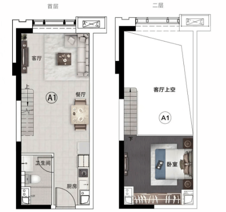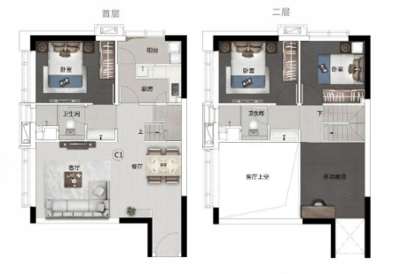 主推产品包括约25-92平方米的轻奢平层公寓和约45-95平方米的灵动LOFT。特别是灵动LOFT设计,如约49.72平方米的户型,提供一层价格享受双倍空间的机会;而约66.99平方米的户型则采用双钥匙设计,适合家庭居住,功能齐全且尺度舒适。