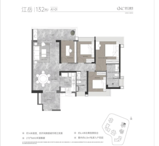 一步到位的终极改善之选,带入户花园增加收纳空间 。室内四开间采光,在阳台可直面广州塔,尽享城市观景台视野。