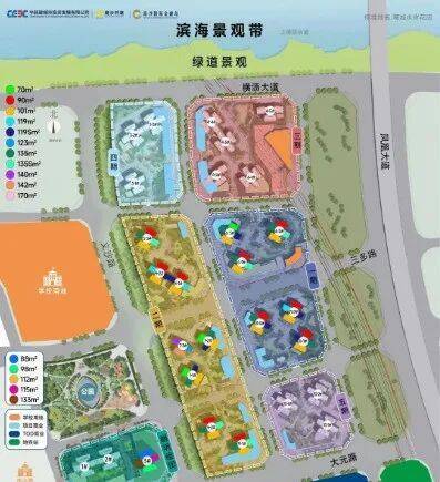户型涵盖70-142㎡二至四房,全南向及南北通透设计,空间布局合理,采光通风优