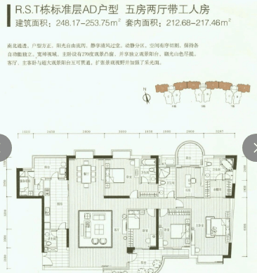 虽为2004年建成项目,但天鹅堡二期在户型设计上极具前瞻性。主力户型为200–270㎡四至五房,本次推荐的253㎡单位为典型代表:南北通透、东南朝向,采光通风俱佳;设有双主卧套间+独立保姆房,功能分区明确;部分户型配备270°观景阳台,尽揽湖山海景。更值得一提的是,项目地下室层高达5.5米,具备改造为家庭影院、酒窖或收藏空间的潜力,显著提升实际使用面积与生活品质。尽管早期设计未预留中央空调机位,但通过合理规划可有效优化外立面美观度。