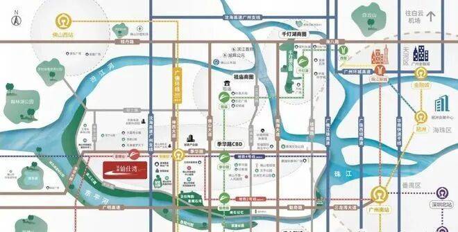 双地铁交汇:广佛地铁2号线已通车,距智慧新城站约500米,快速通达广州南站;广佛地铁4号线规划中,未来二期将对接广州多条线路。