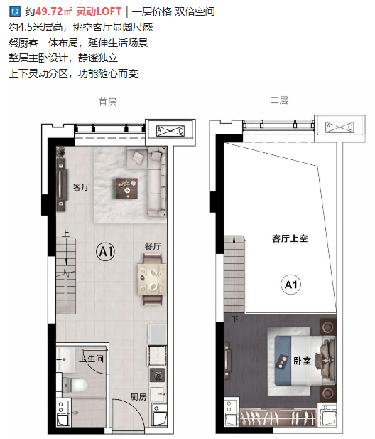 主推产品包括约25-92㎡轻奢平层公寓和约45-95㎡灵动LOFT,满足不同需求的生活方式。