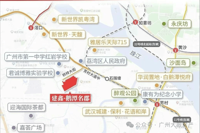 荔湾桥梓大街南侧地块位于白鹅潭板块,临近荔湾区府和芳村大道中,与在建11号线石围塘站只有800多米,去天河、海珠都会比较方便。