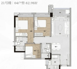 项目主推75-106㎡小高层住宅产品,均为三至四房设计,得房率高达80%,空间利用率优异,适配刚需及改善型家庭居住需求。所有户型均为精装交付,部分房源附赠家私家电,性价比拉满。75㎡与83㎡户型均为三房两卫设计,均可观赏园林景致,空间紧凑实用,满足小家庭日常居住需求;88㎡三房两卫户型采用东南向布局,采光通风条件俱佳;101㎡与106㎡四房两卫户型均实现南北对流,部分户型可眺望南香山景,居住舒适度拉满。目前在售21-25栋楼宇,均为14层小高层,2梯6户配置,其中21-22栋为精装现房,即买即住;23-25栋为准现房,交付周期短,风险低,置业更安心。