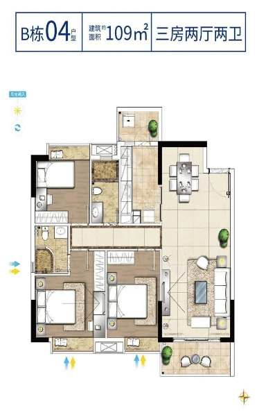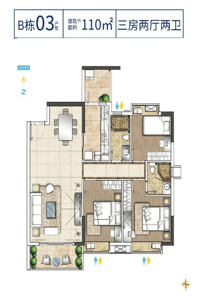 顺景花园·星悦轩提供建面约75-110㎡的臻品三房,所有户型均采用全明设计、方正格局和科学动线,确保南向采光充足,空间阔绰且功能性强。