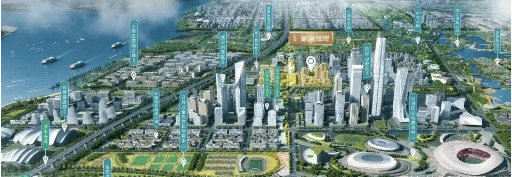 规划中的商业中心:周边规划有约14.3万平方米的商业用地,未来将打造集购物、餐饮、娱乐、文化等多元功能于一体的综合性商业中心。