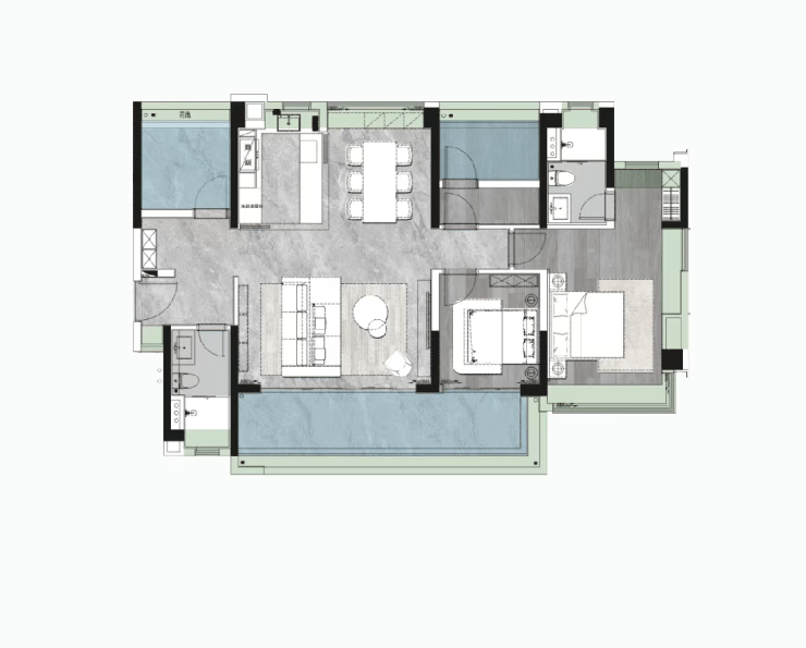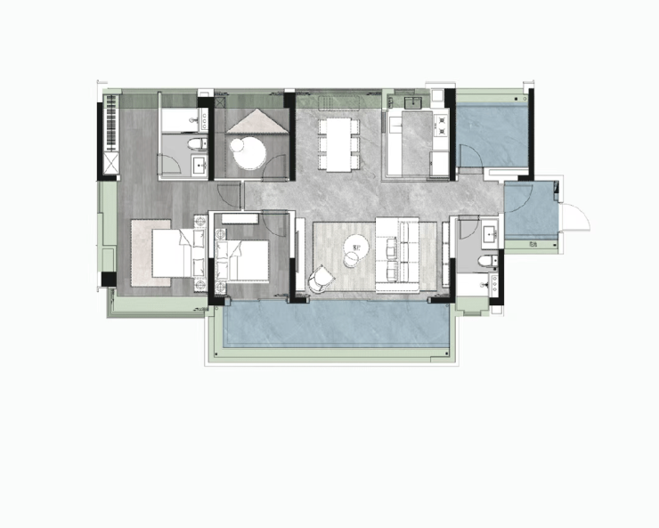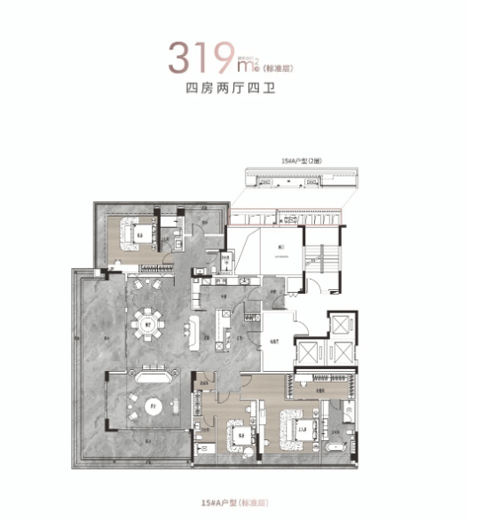 214-313㎡大平层:定位高端改善,空间尺度极致。采用奢华套间设计,配备独立书房、影音室、步入式衣帽间等功能区域,部分户型配备私人泳池,270°环幕江景视野无遮挡,为塔尖人群提供极致居住体验。