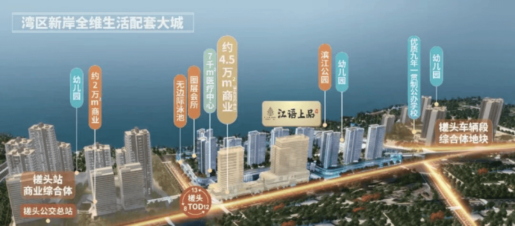 区域贡献:作为槎头TOD二期核心项目,江语上品苑承载着区域人居升级的重要使命。项目配建优质教育、商业配套,与一期、三期形成150万方全配套大城,助力罗冲围片区从“城市更新”迈向“品质焕新”。同时,国央企的开发实力为片区改造提供坚实保障,加速湾区新岸“一带三产”产业布局落地,推动区域经济发展。
