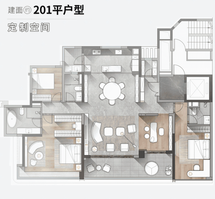 建面约200平+的户型,就做出了“X+1”定制空间,业主可以根据自己需求,定制生活场景。