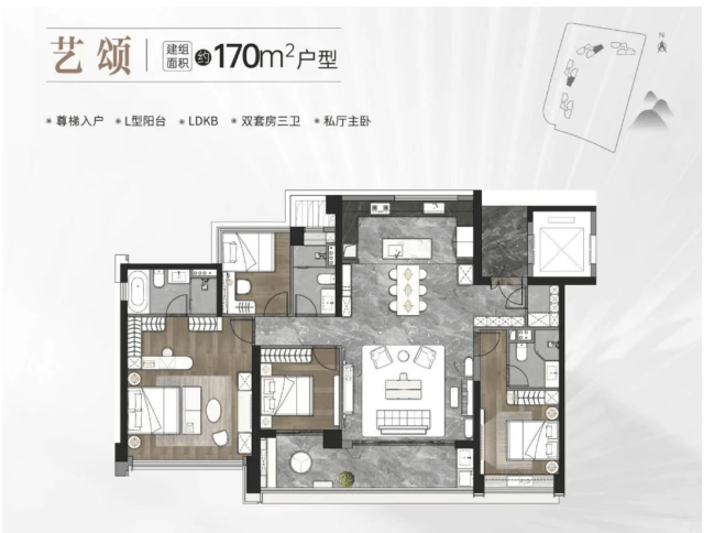 中海麓府提供三种户型选择,分别是建面约126㎡三房、143㎡和170㎡的四房。每个户型均经过精心设计,注重空间的有效利用和居住舒适度。例如,126㎡户型采用尊梯入户设计,配备阔幕阳台、LDKB一体化空间等功能;170㎡户型则拥有双套房三卫设计,私厅主卧保证了主人的私密性和尊贵感。