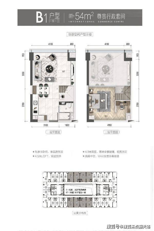 B1户型54㎡一房两厅一卫:对于追求品质生活的个人或新婚夫妇来说,此户型既实用又舒适。