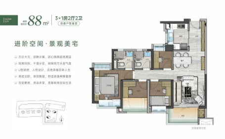 超高使用率户型:73㎡即可做四房,性价比极高。