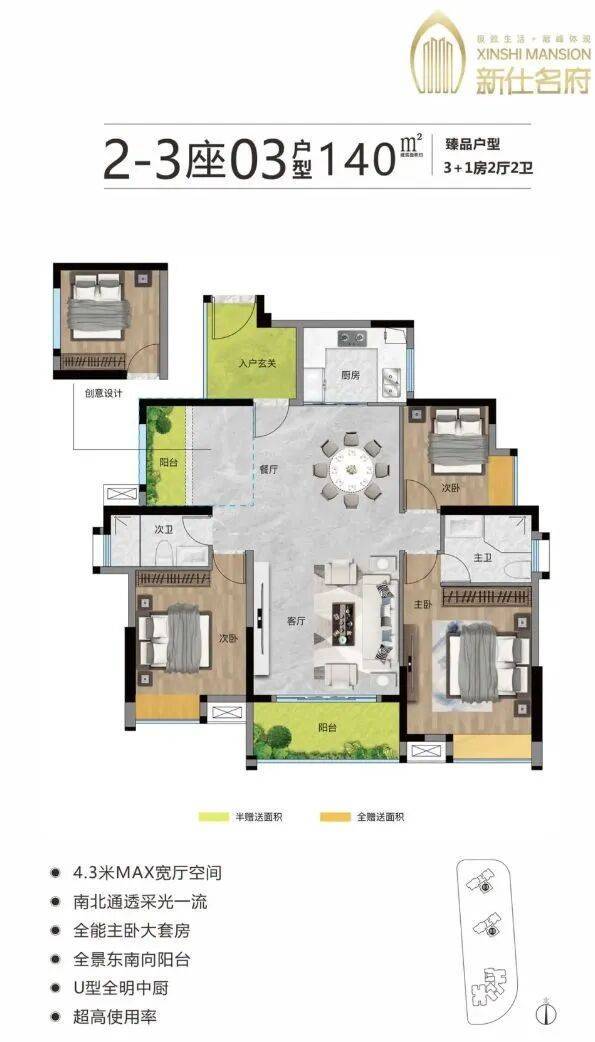 户型设计与空间细节:层高3.1米起,复式四房实现“买一层得两层”