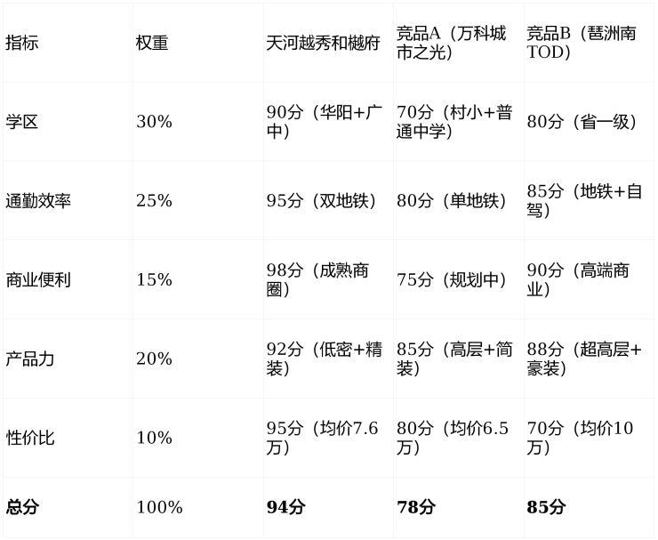竞品对比:与琶洲南TOD相比,总价低400万;与天河壹品相比,学区更优。
