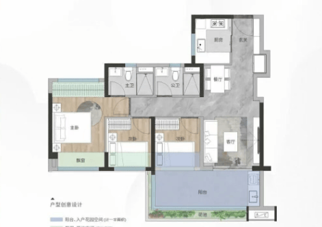 户型面积:约77-95平方米,三至四房