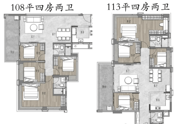 项目打造 69㎡三房、85㎡三房两卫、108-113㎡四房户型,所有户型均做到动静分区、采光充足,69㎡三房是广州西部稀缺新规极小户型,85㎡三房两卫全卧室朝南,113㎡四房媲美 130㎡户型尺度,LDKB 一体化设计,使用率超 90%。