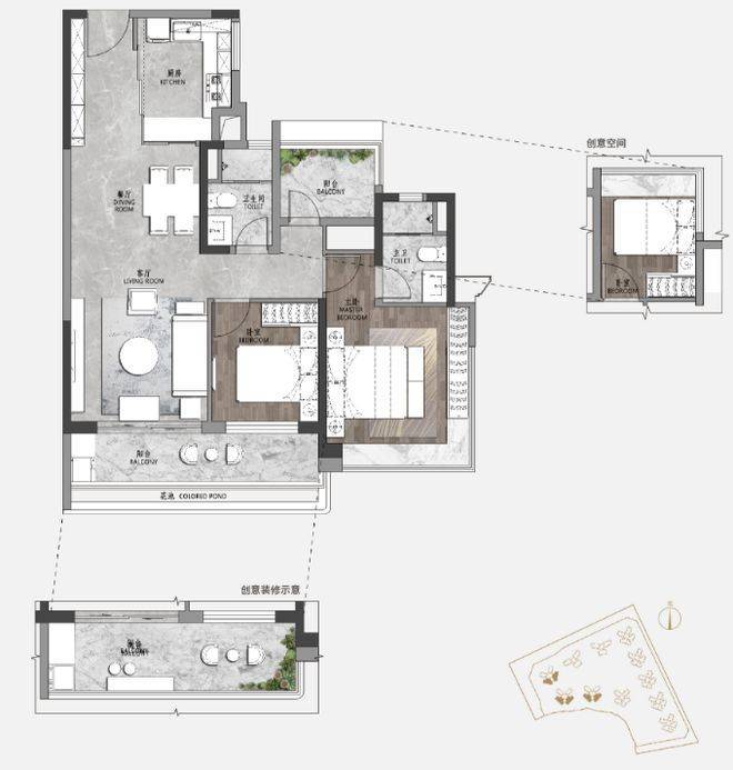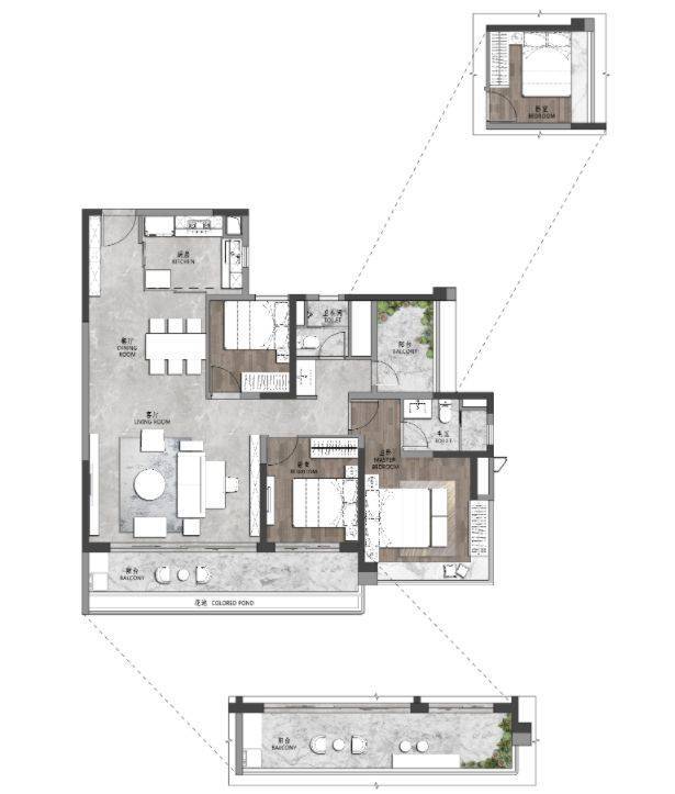 “典而不古”;以现代度假式居住体验为主题,糅合岭南文化“余荫山房理念”,以现代手法演绎经典名园空间格局的独特神韵,赋予空间浓厚的人文内涵与象征传承的精神内核。