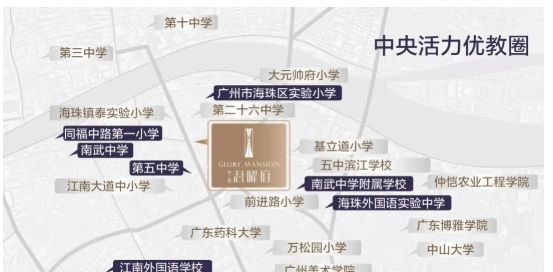 教育资源颇具优势。家门口公办省一级海珠区实验小学相伴,为孩子的基础教育提供了坚实保障。依据2024年教育招生公示,该小学对口五中、六中、南武等名校(具体招生政策以当年政府教育局公布为准)。不仅如此,周边30余所优质学府林立,形成了一个集中且优质的“中央活力优教圈”,让孩子从小浸润在浓厚的学术氛围中,开启海珠菁英教育的崭新时代,为孩子的未来发展奠定良好基础。售楼处电话:提供购房咨询的联系方式400 - 828 - 5661