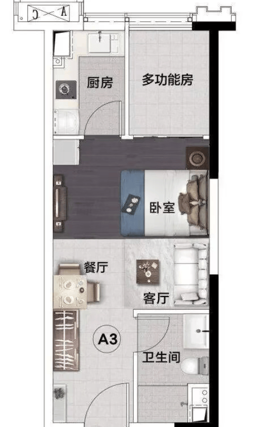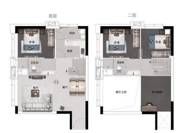 百变loft产品 | 49.72㎡一室二厅一卫:挑空客厅设计,赋予空间更大的灵活性和舒适感。