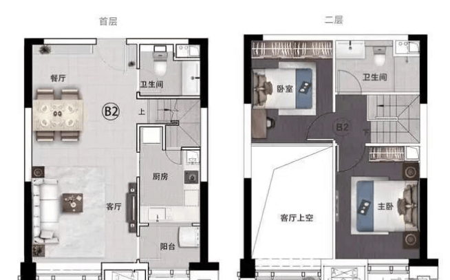 百变loft产品 | 66.99㎡二室二厅二卫:宽敞明亮,适合小家庭居住。