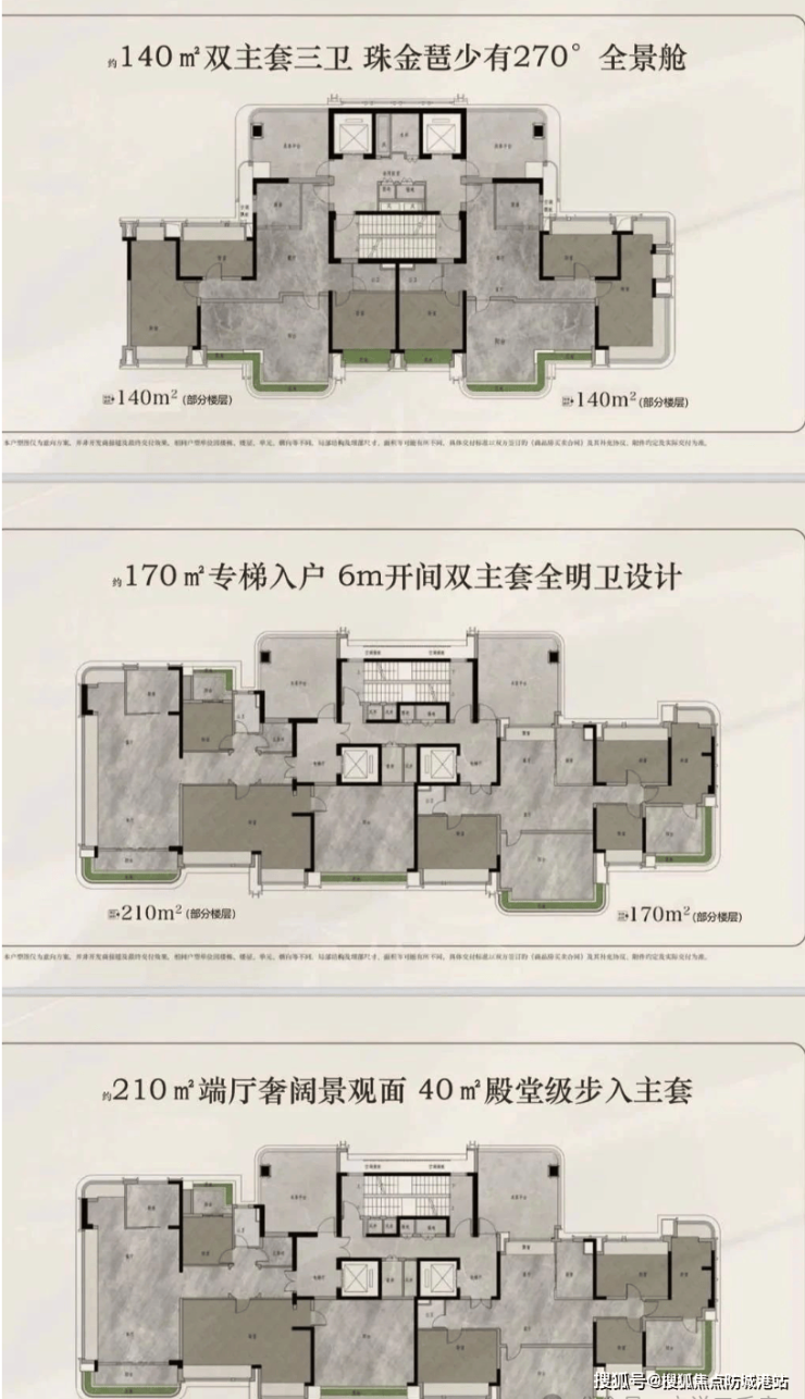 210㎡环幕四房:得房率达125%,实际单价直降1.5万/㎡,总价突破2400万,赠送面积使实际使用率超140%(相当于210㎡购入294㎡空间)。独梯独户,珠江新城天际线景观,超大客厅+多个观景阳台。