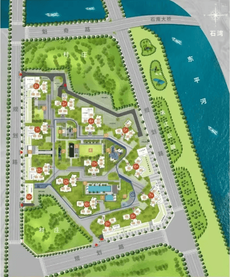 我们的设计理念,是于东平河畔打造一座“与江为邻,与未来共成长”的全生命周期活力社区。我们深信,美好的居住应能呼应自然,并随家庭成长而进化。因此,我们提出了“玖悦生活,澜湾相伴”的核心理念。项目充分利用一线临江的稀缺资源,通过科学的围合式建筑布局与双中庭园林规划,力求让更多楼栋、更多家庭能享受到东平河的壮阔景观与清新江风。我们精心规划了全龄段的休闲活动空间与环形漫步道,旨在为每一位家庭成员提供健康、活力的户外场所。同时,我们提供从紧凑户型到舒适叠院的丰富产品线,满足单身、新婚、二胎乃至多代同堂等不同生命阶段的居住需求,让社区充满成长的活力与温度。