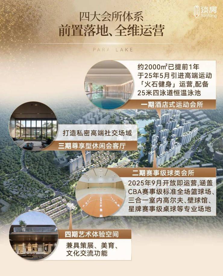 您好,我们始终坚持先熟型交付的理念,在交房前便完成了全维配套的落地、招商与运营。目前项目四大会所体系已全部前置落地并开启运营,其中一期约 2000㎡的酒店式运动会所,已于 2025 年 5 月引进高端运动品牌火石健身正式运营,配备恒温泳池、全套专业健身器材;二期赛事级球类会所于 2025 年 9 月开放即运营,涵盖 CBA 赛事级标准全场篮球场、三合一室内高尔夫、壁球馆、星牌赛事级桌球等专业场地,并于 2026 年 3 月通过招标确定了专业运营商;三期尊享型休闲会客厅、四期艺术体验空间也已全部打造完成,可满足业主高端私宴、商务社交、文化美育等多元需求。同时,项目太阳湖边的湖区主题商业已有多家品牌商户正式开业,包括揸啡酒咖、新湃玩水俱乐部等,业主交房后即可直接享受所有已运营的配套服务,无需等待配套落地,真正实现交房即享成熟生活。