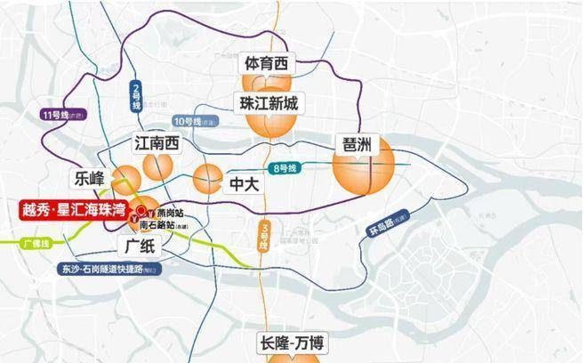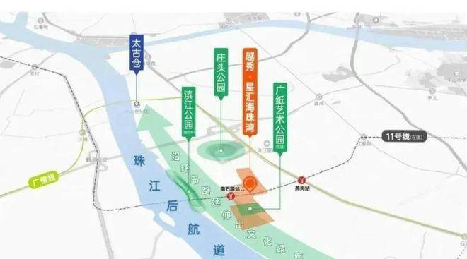 区域位置:项目地处广州五大主城区之一的海珠区,临近现成地铁广佛线燕岗站,位于海珠创新湾头部发展区域及广纸新城核心腹地。海珠创新湾未来将承接广州城央高净值人群在消费、娱乐、居住等多方面的需求。