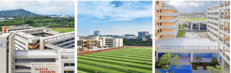 这可能是广州性价比最高的“名校盘”。项目与华南师范大学附属黄埔实验学校仅一路之隔。该校为九年一贯制公办学校,已于2024年正式开学。家长只需步行过马路即可送孩子到校,不仅节省了每天往返接送的2小时通勤时间,更重要的是规避了上下学途中的交通安全风险。此外,周边2公里范围内还有省一级广州市第二中学科学城校区,构成了从小学到高中的全龄段优质教育闭环。