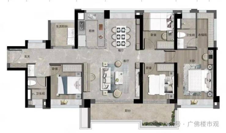 ·亮点: 通常采用南北对流设计,拥有独立入户玄关和超宽景观阳台。四开间朝南,采光面极佳。主卧套房空间更为阔绰,可设置独立衣帽间。