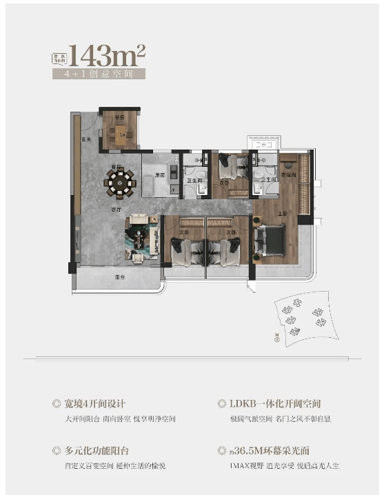 大壮名城·名门推出的户型面积范围广泛,从88平方米至143平方米不等,适合不同家庭结构的需求。所有户型均采用了宽景阳台、L形大飘窗的设计,确保每一户都能拥有良好的采光和视野。特别是143平方米的大户型,更是设计了四开间朝南的布局,最大程度地提升了居住舒适度。与此同时,二期产品的实用率超过100%,相比一期产品有了显著提升,充分体现了开发商对空间利用效率的重视。