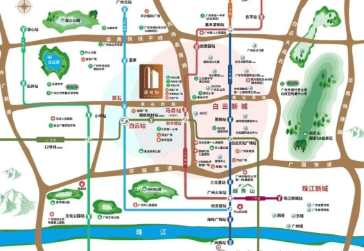 🚇交通配套距地铁 14 号 / 12 号 / 24 号线马务站直线距离约 700 米,有望年底通车,三地铁环绕,4 站即达广州火车站。自驾可通过黄石路等多条主干道畅行。
