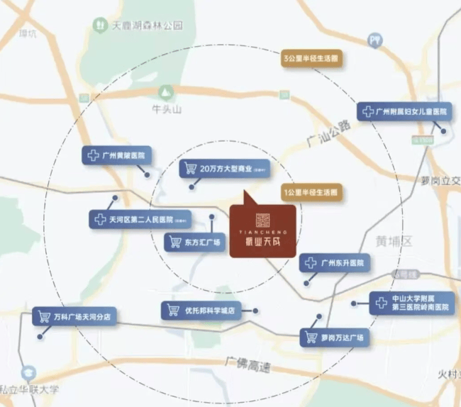 交通方面,项目坐拥“三横三纵”立体路网:广佛肇高速、广汕公路、广州环城高速横向贯通;华南快速、大观路、开创大道纵向串联。从项目出发,仅约2.7公里即可驶入广汕路主干道,快速通达天河CBD;约2公里接入广佛肇高速,畅行粤港澳大湾区。轨道交通同样便捷——步行可达地铁6号线黄陂站、金峰站双站点,2站即达苏元站换乘21号线,6站直达天河客运站,无缝链接城市核心商务区。