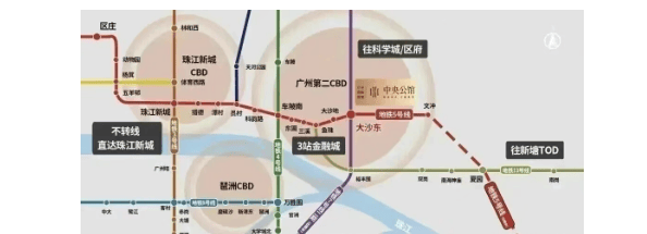 交通便捷性是中央公馆的核心优势。项目距地铁5号线与7号线交汇的大沙东站仅约500–800米,步行10分钟内可达。5号线3站直达金融城,10站(约26分钟)无换乘抵达珠江新城;7号线3站至科学城,7站通达番禺万博,高效连接广州三大CBD。自驾方面,紧邻黄埔大道、中山大道、广园快速三大城市动脉,快速通达天河、海珠、南沙等区域。尽管高峰期主干道偶有拥堵,但对地铁通勤族而言,每日可节省大量时间,真正实现“多睡十分钟”的从容生活节奏。