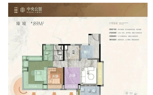 中央公馆主力产品为建面89至125平方米的三至四房,全部采用广州最新住宅设计规范,实用率突破100%,在同区竞品中具备显著优势。户型设计注重功能与采光:全系南向布局,客厅开间宽敞,阳台尺度充足;通过优化飘窗、设备平台等空间,实现合规拓展,提升收纳与使用效率。其中,89㎡做到三房两卫,125㎡实现四房双卫+南北通透,满足不同家庭结构需求。叠加三大央企品牌背书、确定性学位、双地铁通勤等多重价值,使其在300–500万总价段成为兼具自住舒适性与未来流通潜力的优选标的。