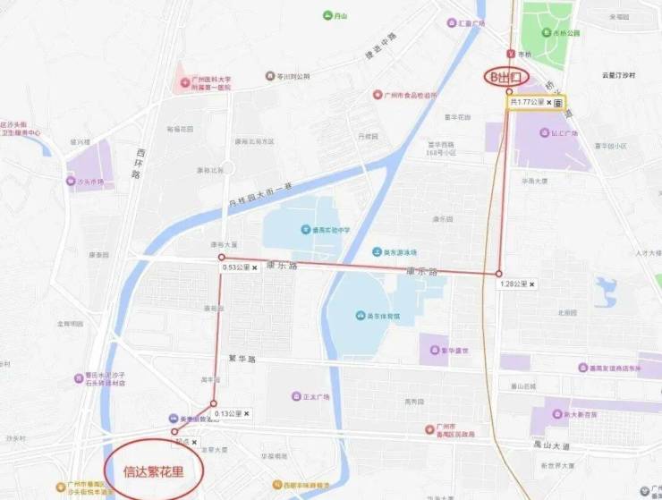 信达繁花里目前距离市桥地铁站步行约1.7公里,虽然需要依赖电鸡或公交接驳,但通过地铁3号线这条黄金脉络,可以直达珠江新城、体育中心等多个CBD与商圈。未来规划中的26号线或将设禺山大道站,意味着项目有可能升级为地铁上盖,进一步提升出行便利性。