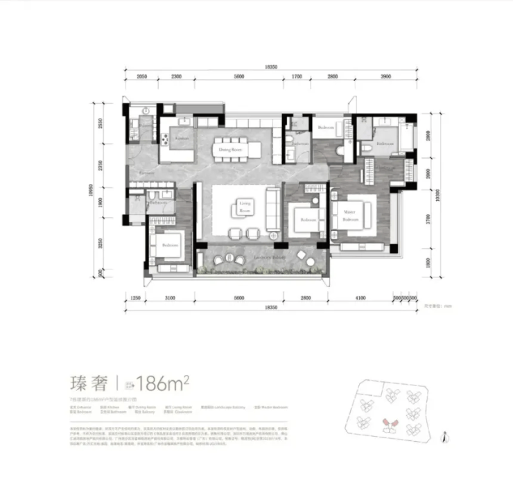 186㎡四房:南向面宽达14米,7.2米长大阳台贯通客厅与次卧,揽景视野无遮挡;双套房设计兼顾长辈隐私与主人尊崇;中西厨分区,提升烹饪社交体验;所有房间均可摆放标准床具,杜绝空间浪费,堪称改善型家庭的终极之选。