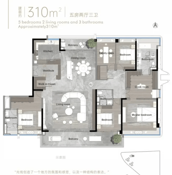 全南向精装大平层:142-326㎡多元户型,得房率高达100%-110%