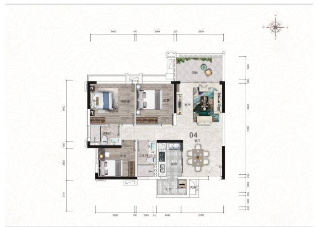 89㎡户型:03 户型建面约 89㎡,为刚需家庭量身打造。4 开间朝南户型设计,全明采光无暗房,客厅南北对流,阳光与清风穿堂入室。玄关入户后为宽阔一体客餐厅,虽为小户型,但空间利用巧妙,尽享进退自如的从容。三房两卫的设计,超大空间利用率,能够灵活满足不同阶段的居住需求。售楼处电话:4009909752 。