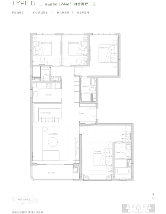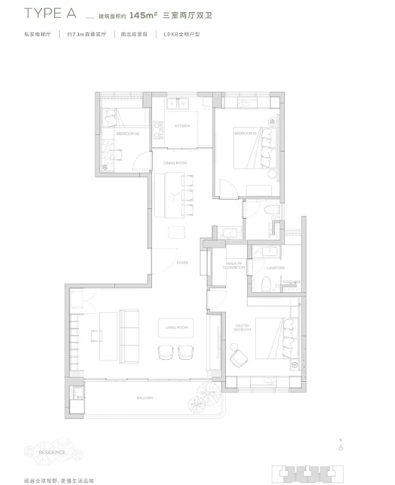 所有楼栋均为16-17层纯板式小高层设计,专梯专户,确保住户隐私。在售户型包括: