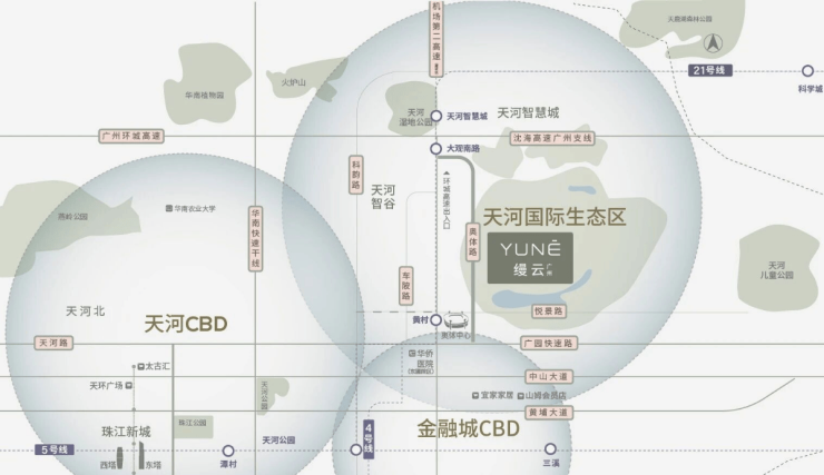 尽管合生·缦云距离天河CBD和金融城CBD仅约6公里,但最近的地铁站是21号线的大观南路站,直线距离超过1公里,需要依赖公交车接驳。对于依赖地铁出行的居民来说,自驾可能是更好的选择。不过,近期规划的悦景路将提升区域内的交通便利性,预计未来会有所改善。