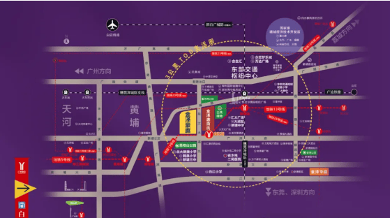 项目交通优势明显,直线距离 13 号线白江地铁站仅 700 米,步行约 8 分钟即可到达。搭乘 13 号线,2 站到黄埔,8 站至天河。在建的 13 号二期将横跨五大主城区,可直达珠江新城。此外,开车 30 分钟能到科学城,40 分钟抵达天河,且临近新塘立交,多条城市主干道如广园快速、广深大道、107 国道、京港澳高速等环绕,出行方式多样,畅行无阻。